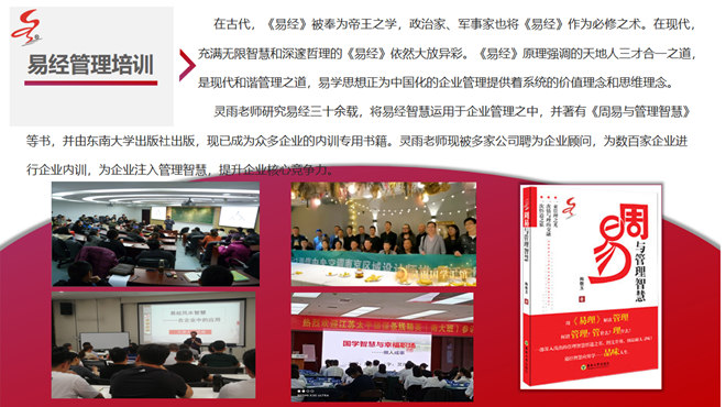 我们常年举办专业、系统的易经八字风水培训班(专业风水大师培训班、专业八字命理师培训班、周易八字起名培训班、易经风水择日培训班、以及易经管理智慧培训班等),培训专业易经八字风水的策划人员。迄今为止,南京灵雨易经八字风水培训学校为社会输送了上千名专业的易经风水策划师、八字命理预测师、八字起名师和择吉师。行胜于言,二十余载易经八字风水教学培训历史,上百期培训班的成功举办,上千名海内外学员的圆满结业,使我们在业内享有极高的声誉,被称为“四柱八字风水大师的摇篮”。
