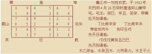 《飞星断》云:紫黄毒药,临宫兑口休尝。即九紫星与五黄星相会,成毒药。此为药毒,可致人及住家之人服毒、吸毒、中毒、现举一例日课考究: